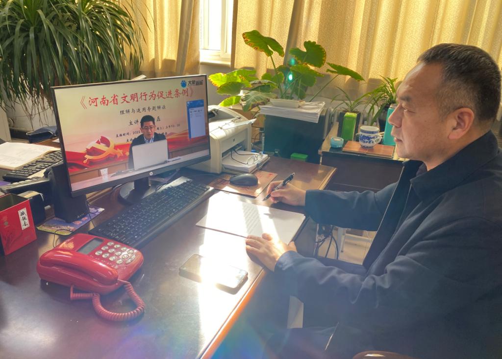 3月2日上午,依据校文明办的通知要求,审计处组织全体人员学习观看《河南省文明行为促进条例》直播活动,郑州大学法学院副教授郑磊围绕《条例》进行专题解读。